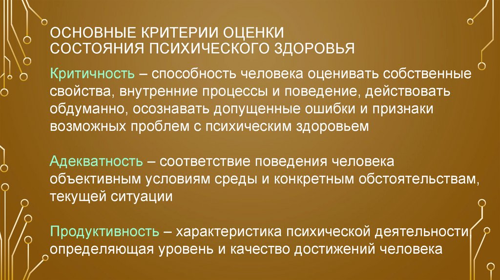 КРИТЕРИИ ПСИХИЧЕСКОГО ЗДОРОВЬЯ