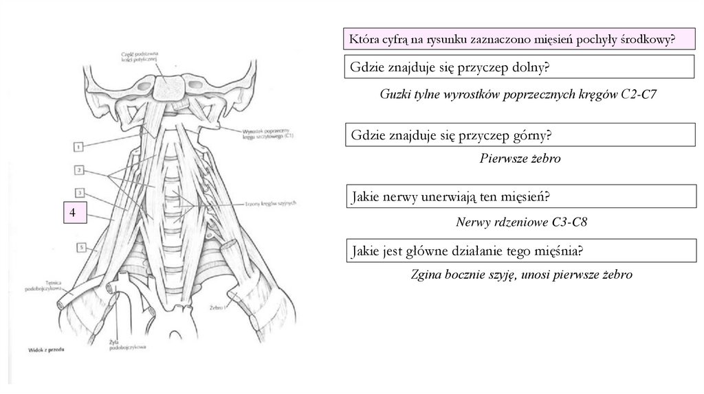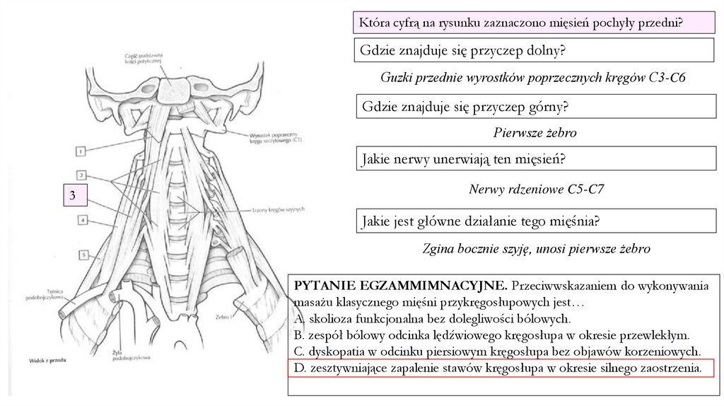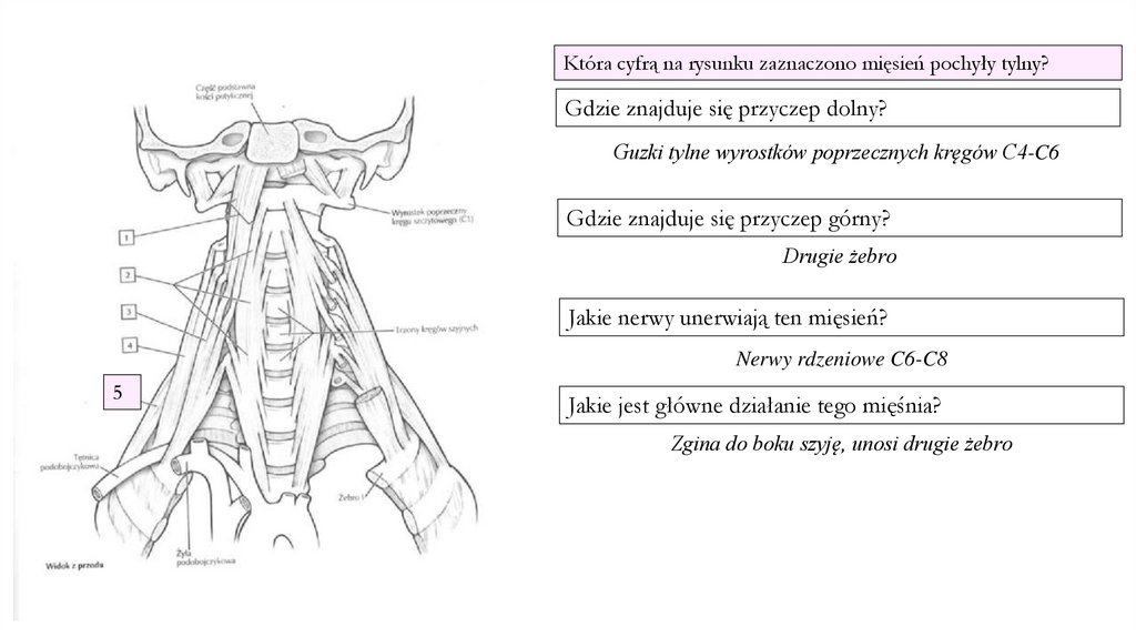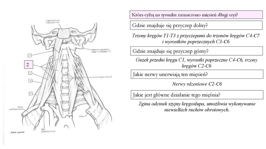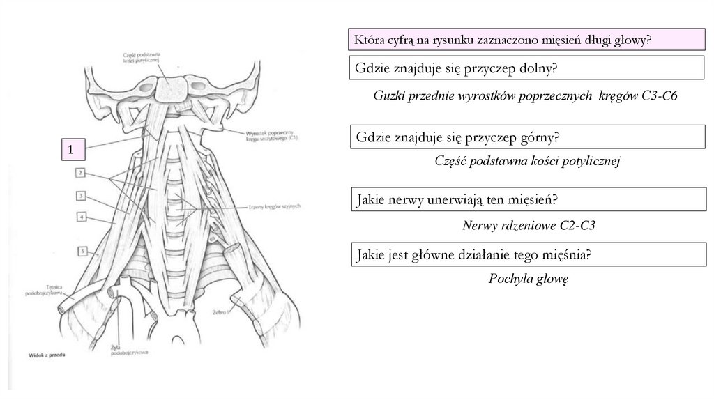 Która cyfrą na rysunku zaznaczono mięsień długi szyi?Gdzie znajduje się przyczep dolny?