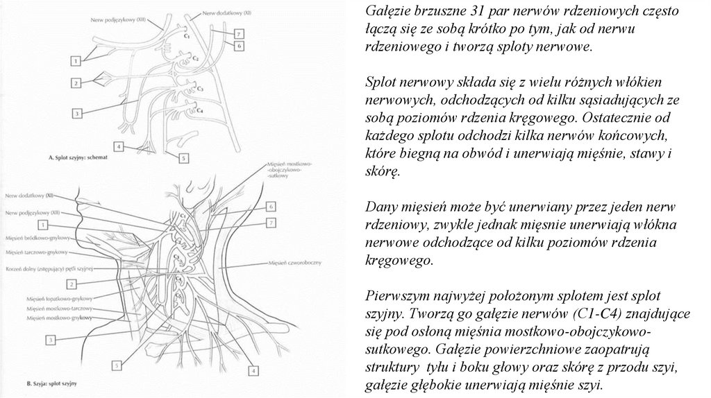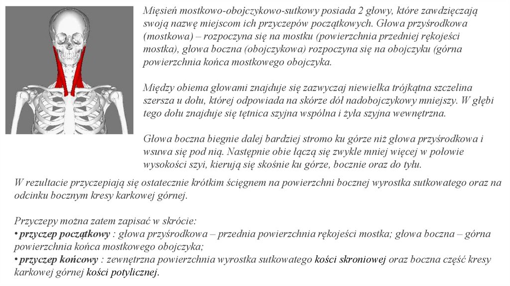 Zgina odcinek szyjny kręgosłupa, umożliwia wykonywanie
