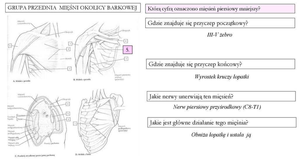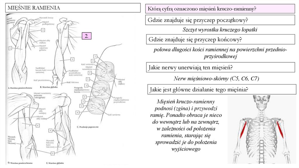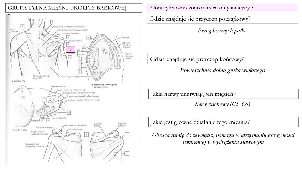 MIĘŚNIE RAMIENIAKtórą cyfrą oznaczono mięsień kruczo-ramienny?