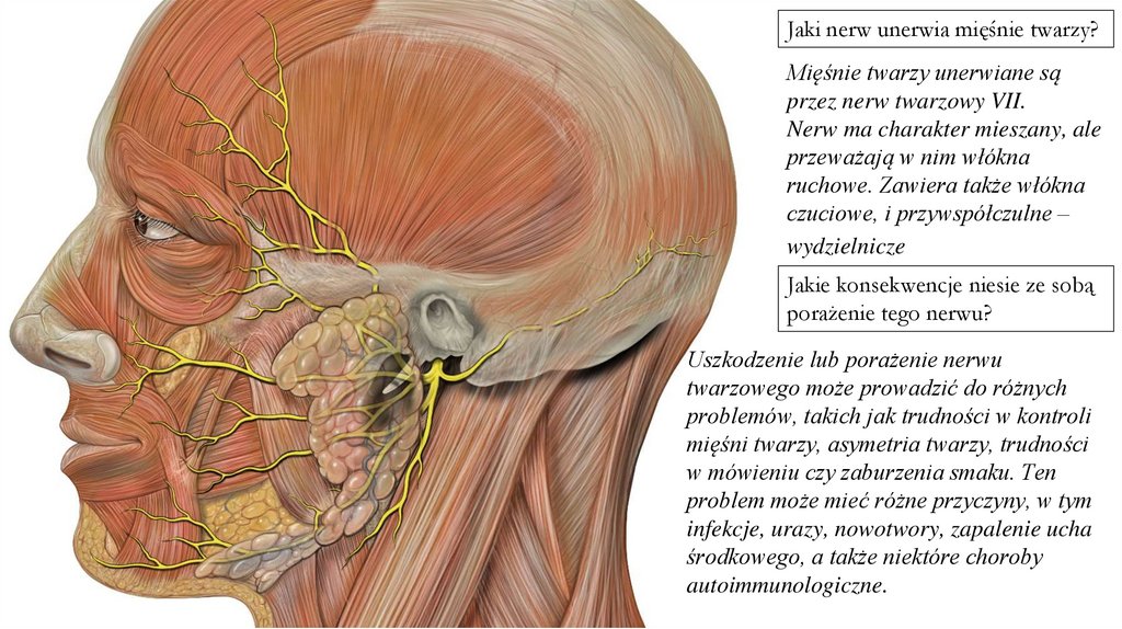 Jaki nerw unerwia mięśnie twarzy?Mięśnie twarzy unerwiane są