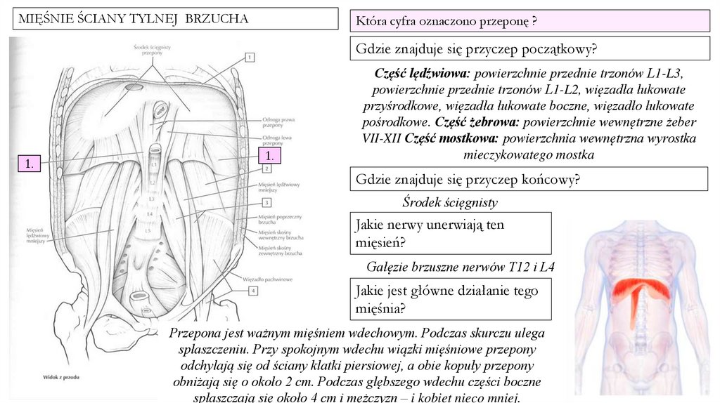 MIĘŚNIE ŚCIANY TYLNEJ BRZUCHAKtóra cyfra oznaczono przeponę ?
