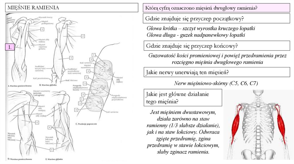 MIĘŚNIE RAMIENIAKtórą cyfrą oznaczono mięsień dwugłowy ramienia?