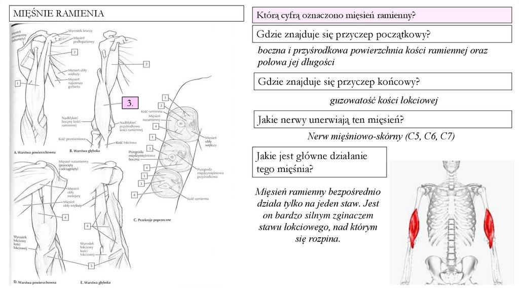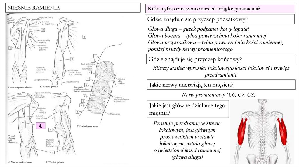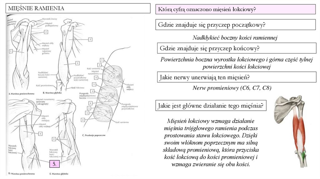 MIĘŚNIE RAMIENIAKtórą cyfrą oznaczono mięsień łokciowy?