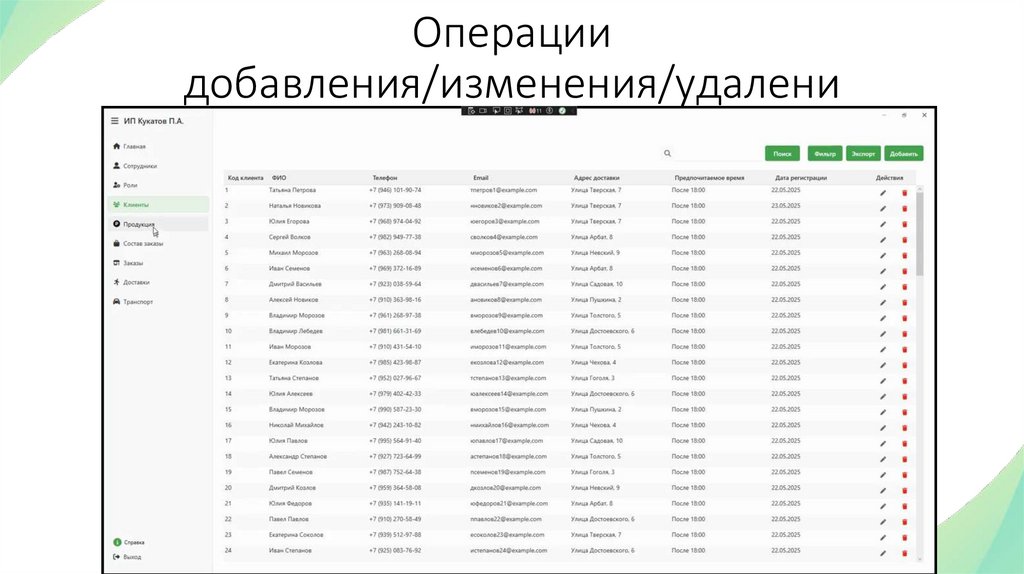 доставкой, обработки заказов и взаимодействия с клиентами, а также для