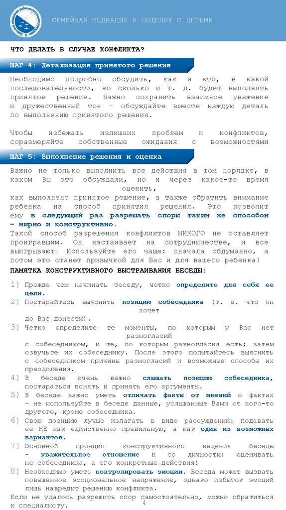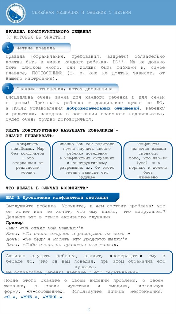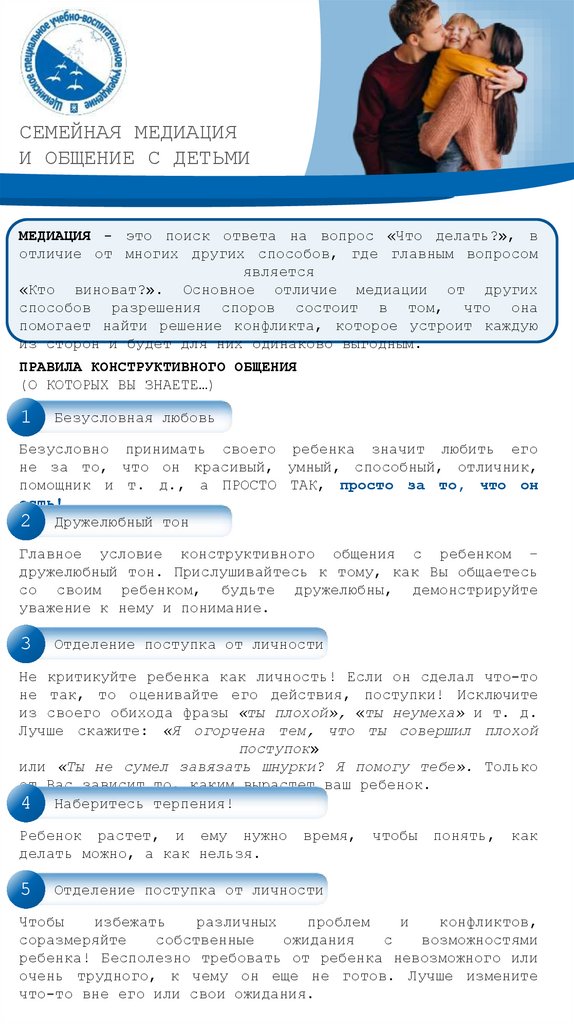 СЕМЕЙНАЯ МЕДИАЦИЯ И ОБЩЕНИЕ С ДЕТЬМИПРАВИЛА КОНСТРУКТИВНОГО ОБЩЕНИЯ