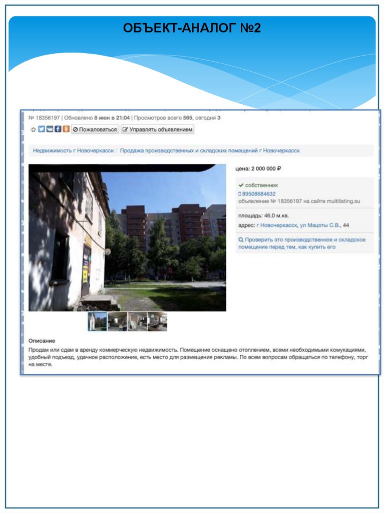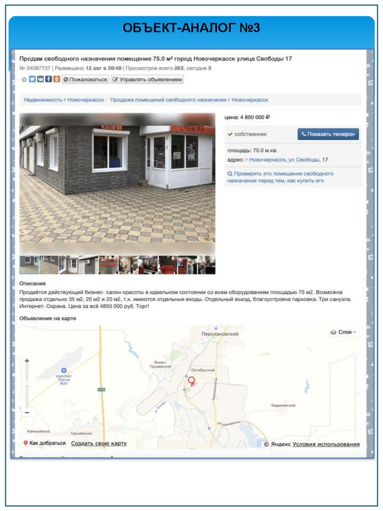 Оценка рыночной стоимости объекта недвижимости (нежилого помещения) в г. Новочеркасск Ростовской области