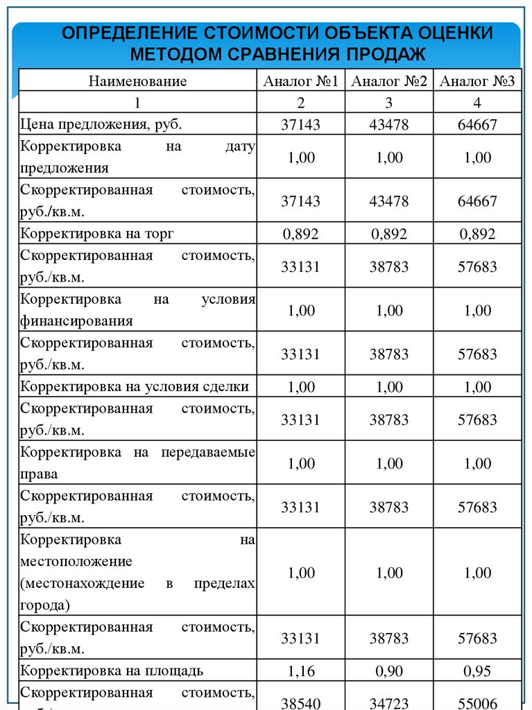 ОПРЕДЕЛЕНИЕ СТОИМОСТИ ОБЪЕКТА ОЦЕНКИМЕТОДОМ СРАВНЕНИЯ ПРОДАЖ