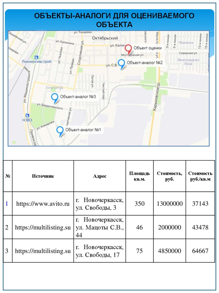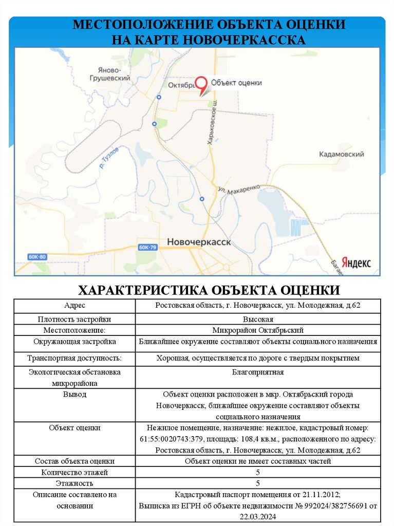 МЕСТОПОЛОЖЕНИЕ ОБЪЕКТА ОЦЕНКИНА КАРТЕ НОВОЧЕРКАССКА