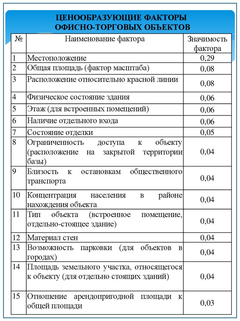 ЦЕНООБРАЗУЮЩИЕ ФАКТОРЫОФИСНО-ТОРГОВЫХ ОБЪЕКТОВ