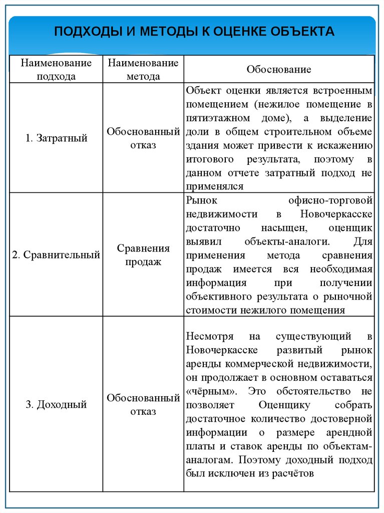 ПОДХОДЫ И МЕТОДЫ К ОЦЕНКЕ ОБЪЕКТАНаименование