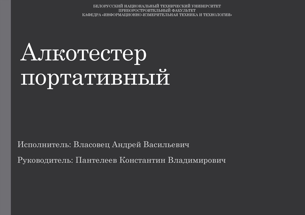 • Цель дипломного проекта – разработка конструкцииалкотестера портативного.