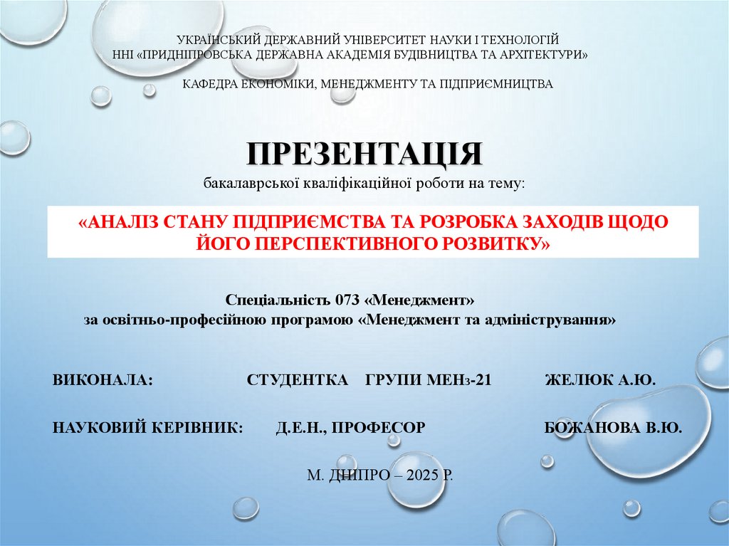 «АНАЛІЗ СТАНУ ПІДПРИЄМСТВА ТА РОЗРОБКА ЗАХОДІВ ЩОДО