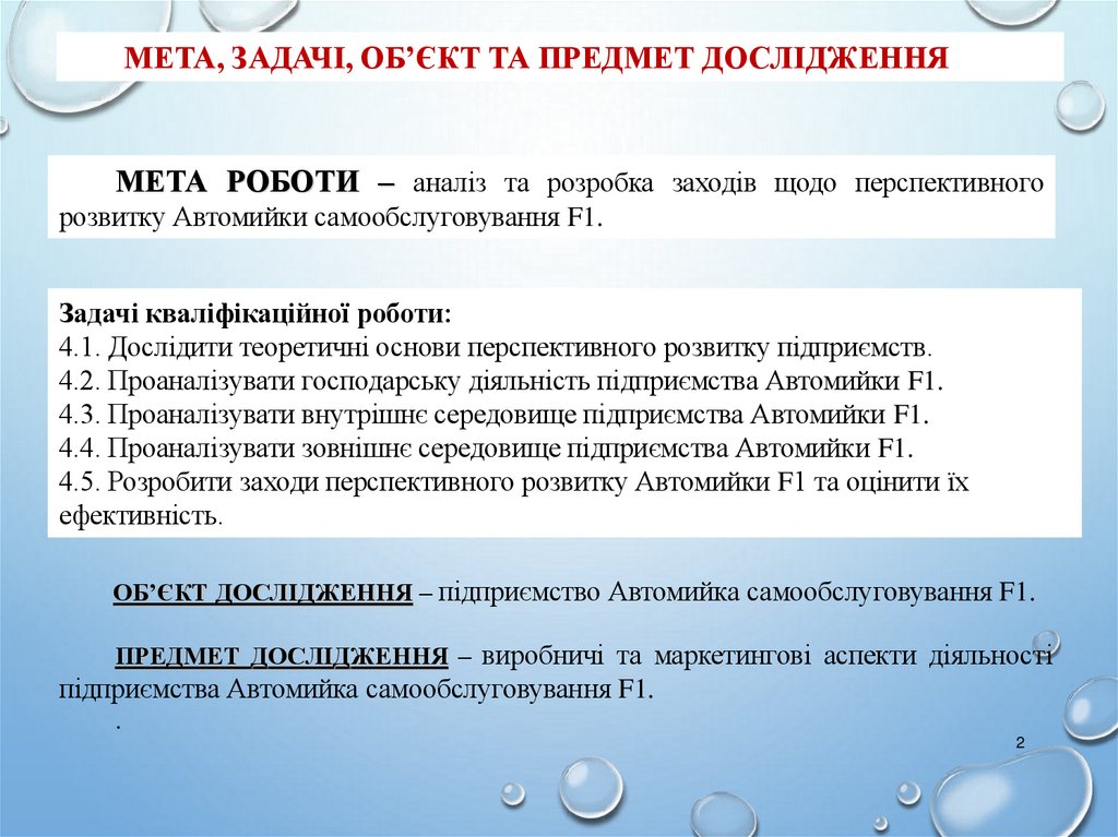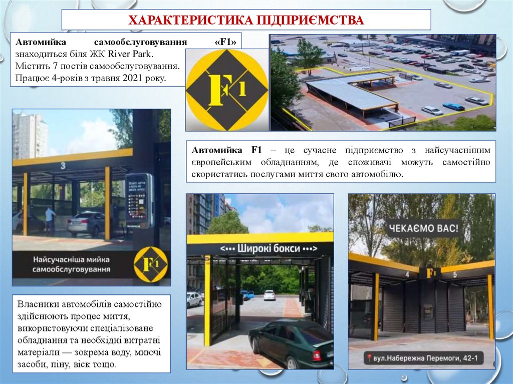 ОБ’ЄКТ ДОСЛІДЖЕННЯ – підприємство Автомийка самообслуговування F1.