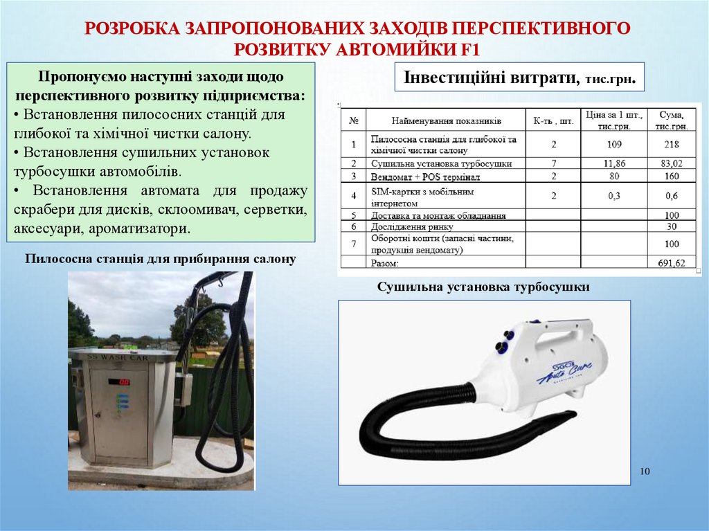 4.5. Розробити заходи перспективного розвитку Автомийки F1 та оцінити їх