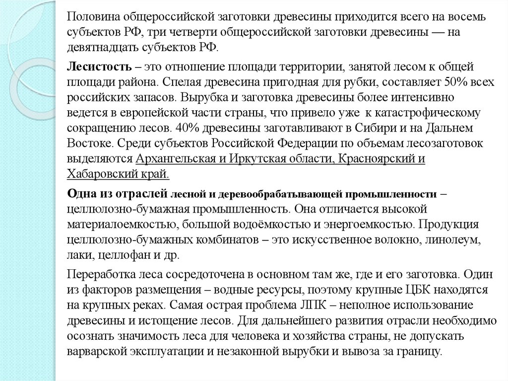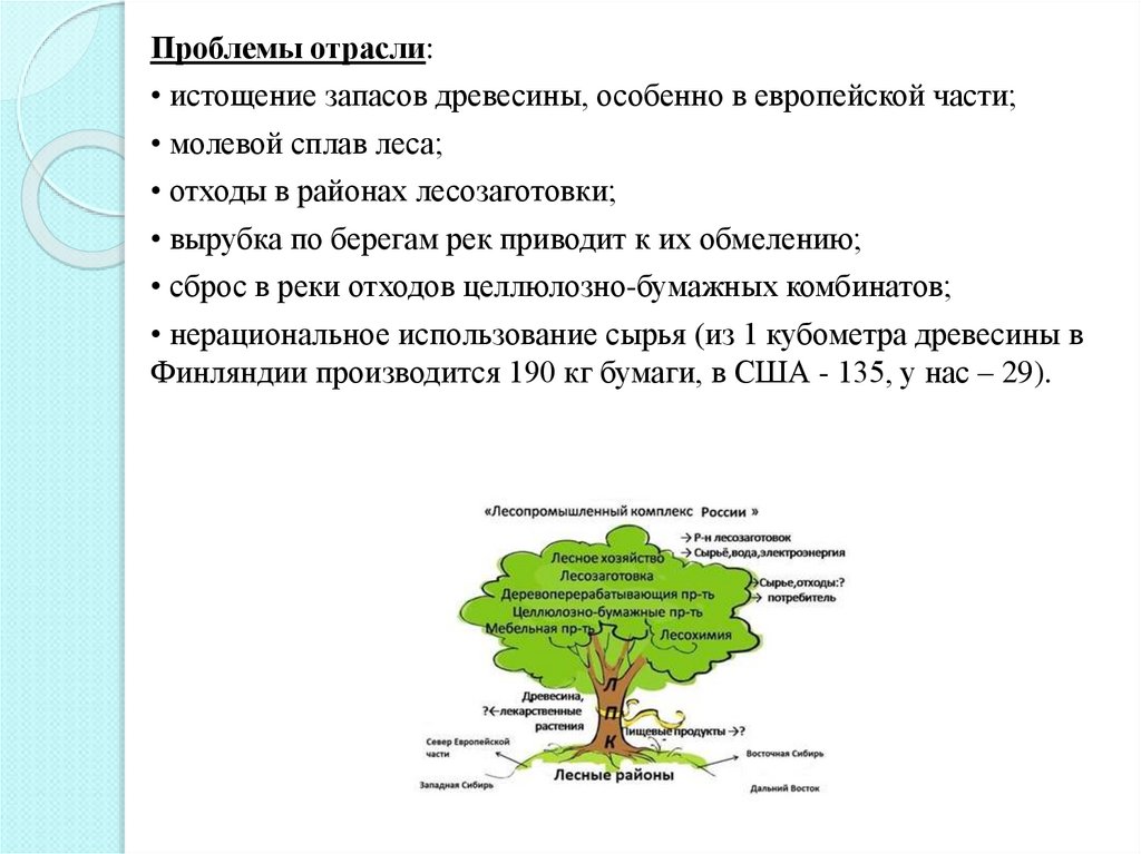 Проблемы отрасли:• истощение запасов древесины, особенно в европейской части;