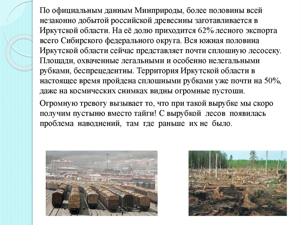 Иркутской области. На её долю приходится 62% лесного экспорта