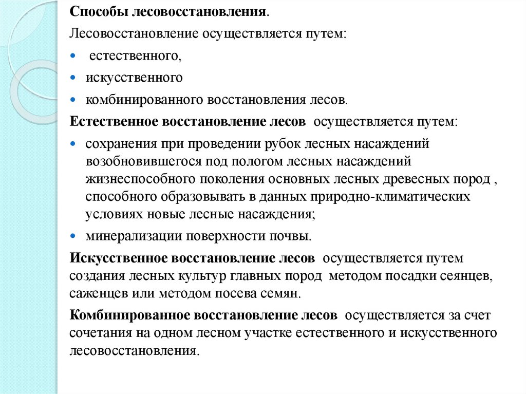 Способы лесовосстановления.Лесовосстановление осуществляется путем: