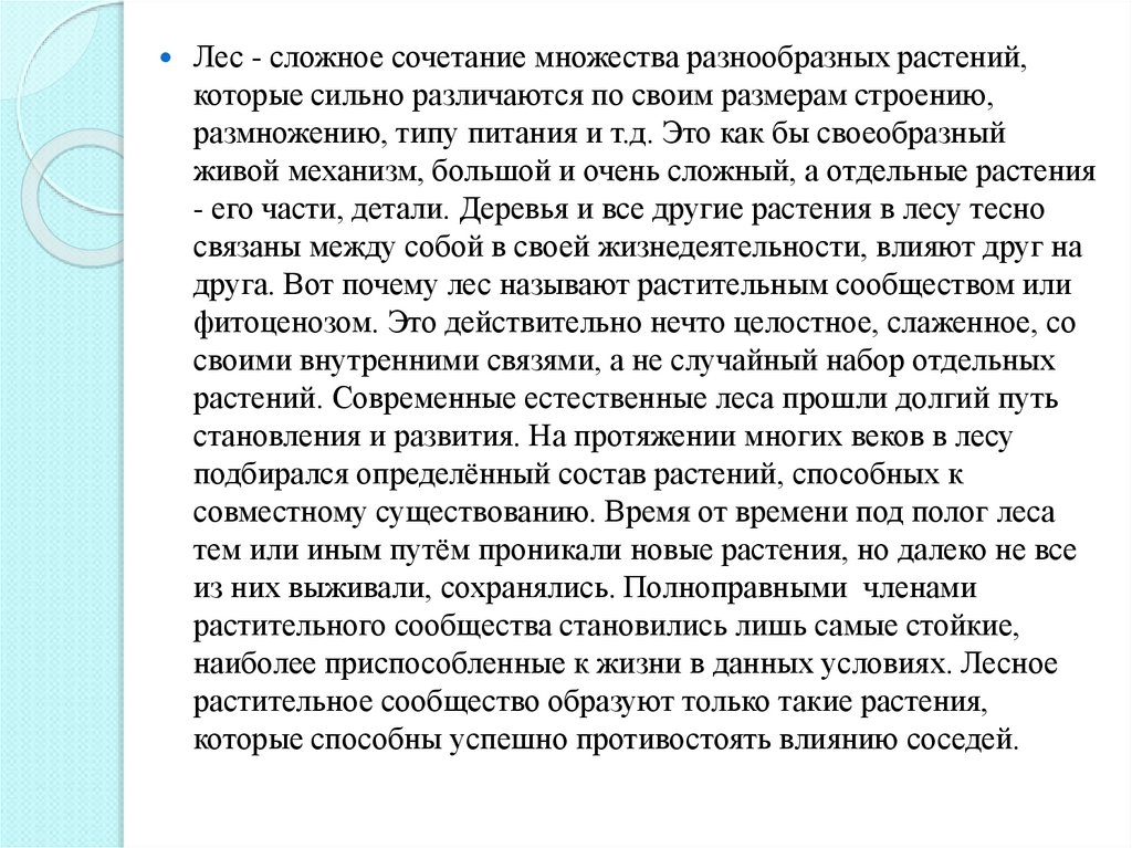 Лес - сложное сочетание множества разнообразных растений,которые сильно различаются по своим размерам строению,