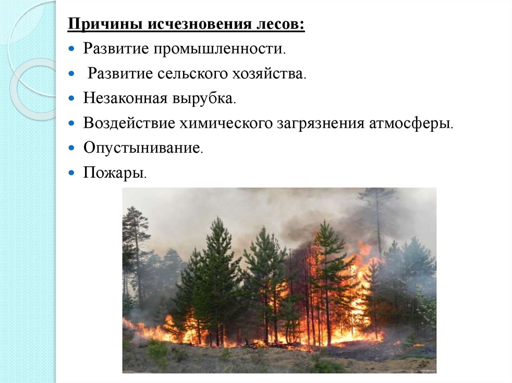 Необходимо проводить масштабные мероприятия поохране лесов, так как уничтожение лесов может