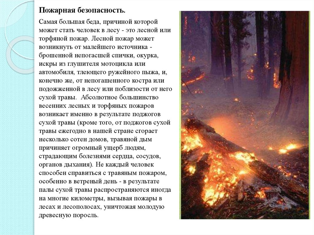 возникнуть от малейшего источника брошенной непогасшей спички, окурка,