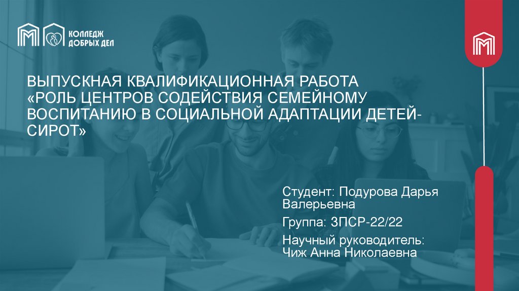 1. ВЫПУСКНАЯ КВАЛИФИКАЦИОННАЯ РАБОТА «РОЛЬ ЦЕНТРОВ СОДЕЙСТВИЯ СЕМЕЙНОМУ ВОСПИТАНИЮ В СОЦИАЛЬНОЙ АДАПТАЦИИ ДЕТЕЙ-СИРОТ»