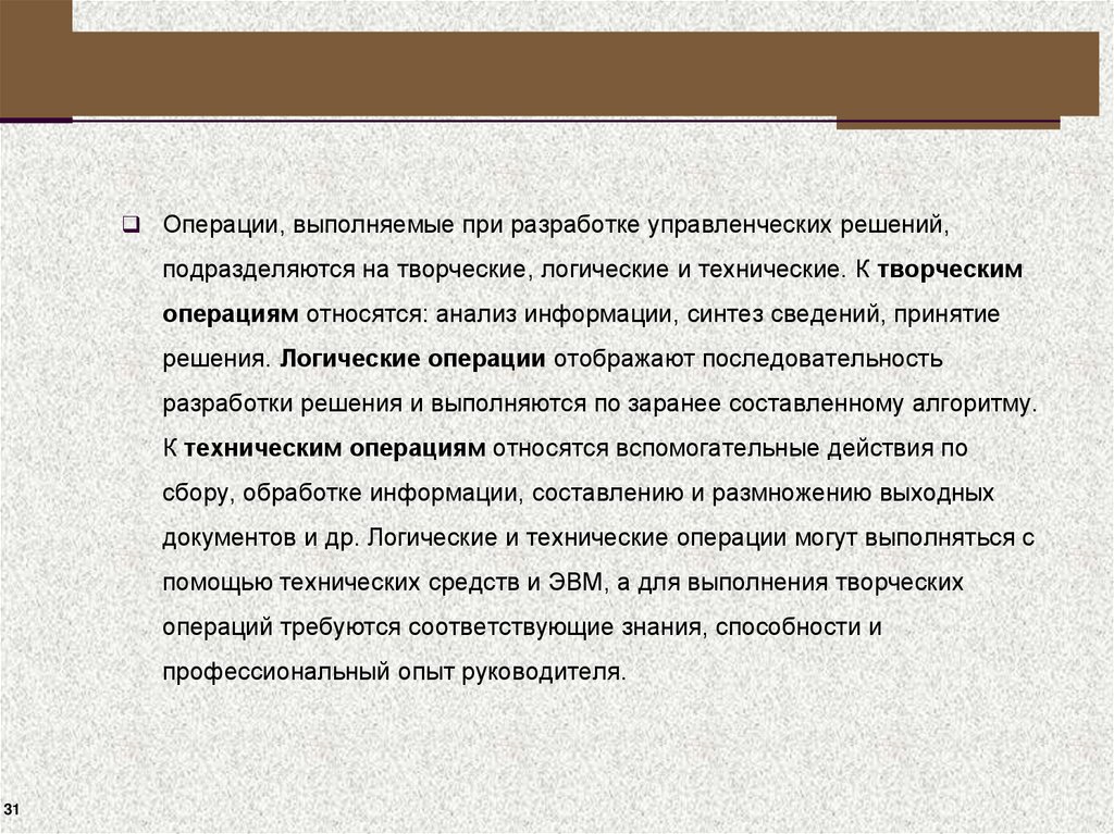 Технология управления – это совокупность формализованных инеформализованных операций, правил и приемов их выполнения, используемых