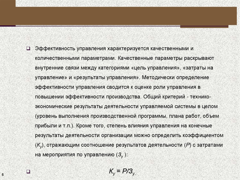 Эффективность управления характеризуется качественными иколичественными параметрами. Качественные параметры раскрывают