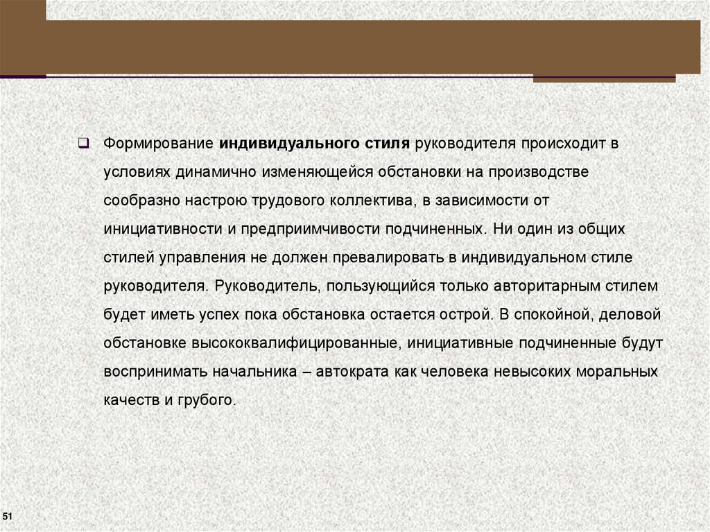 Формирование индивидуального стиля руководителя происходит вусловиях динамично изменяющейся обстановки на производстве