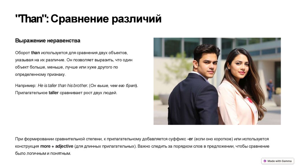 Например: He is taller than his brother. (Он выше, чем его брат.).