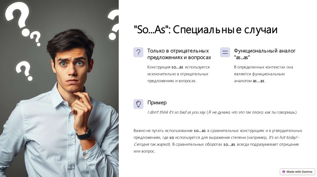 Важно не путать использование so...as в сравнительных конструкциях и в утвердительных