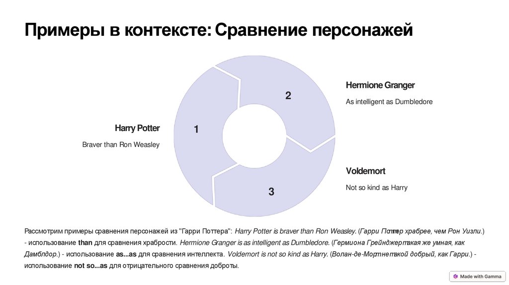 Дамблдор.) - использование as...as для сравнения интеллекта. Voldemort is not so kind as Harry. (Волан-де-Мортнетакой добрый, как Гарри.) использование not so...as для отрицательного сравнения доброты.