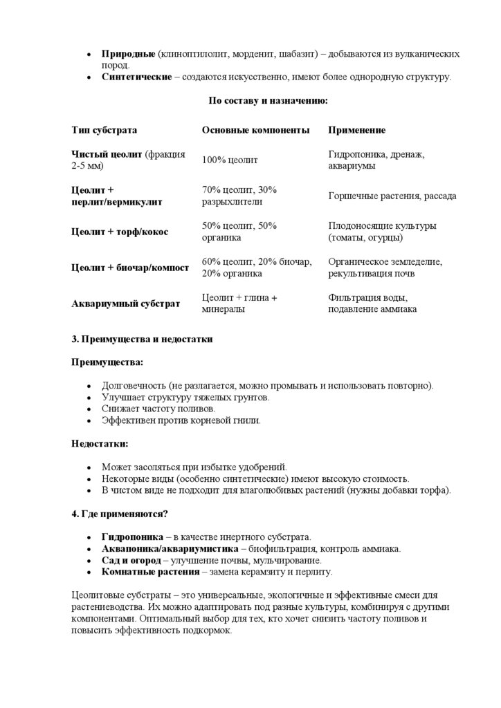 2. Разновидности цеолитовых субстратов