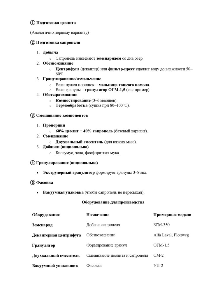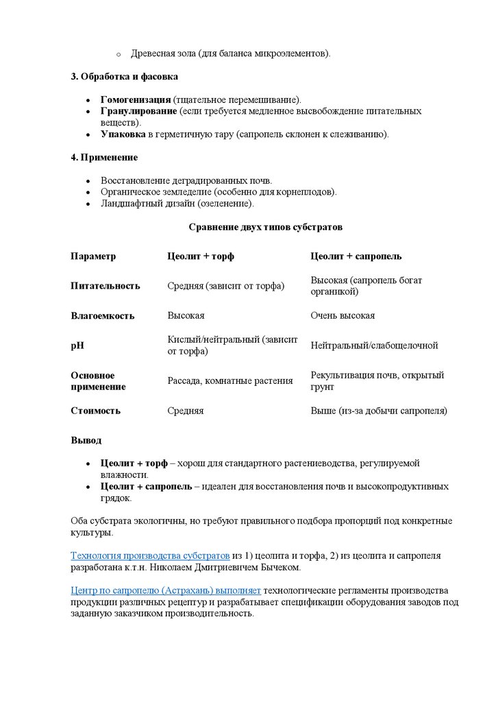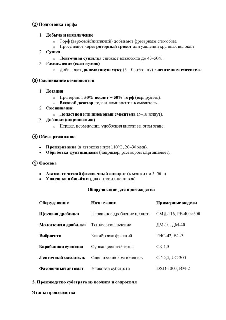 2. Производство субстрата из цеолита и сапропеля