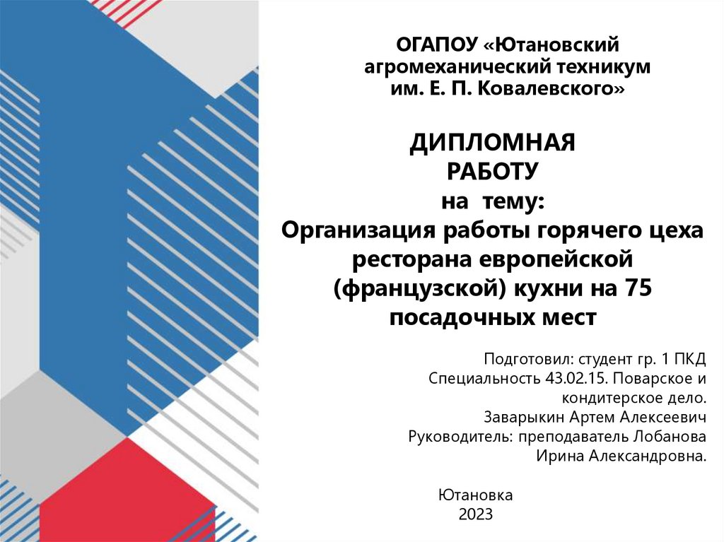 Организация работы горячего цеха ресторана европейской (французской) кухни на 75 посадочных мест