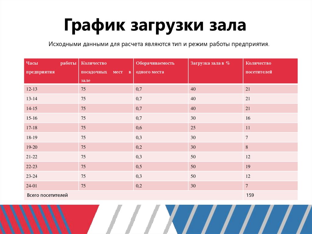 •Произвести необходимые производственные расчеты (загрузка зала,