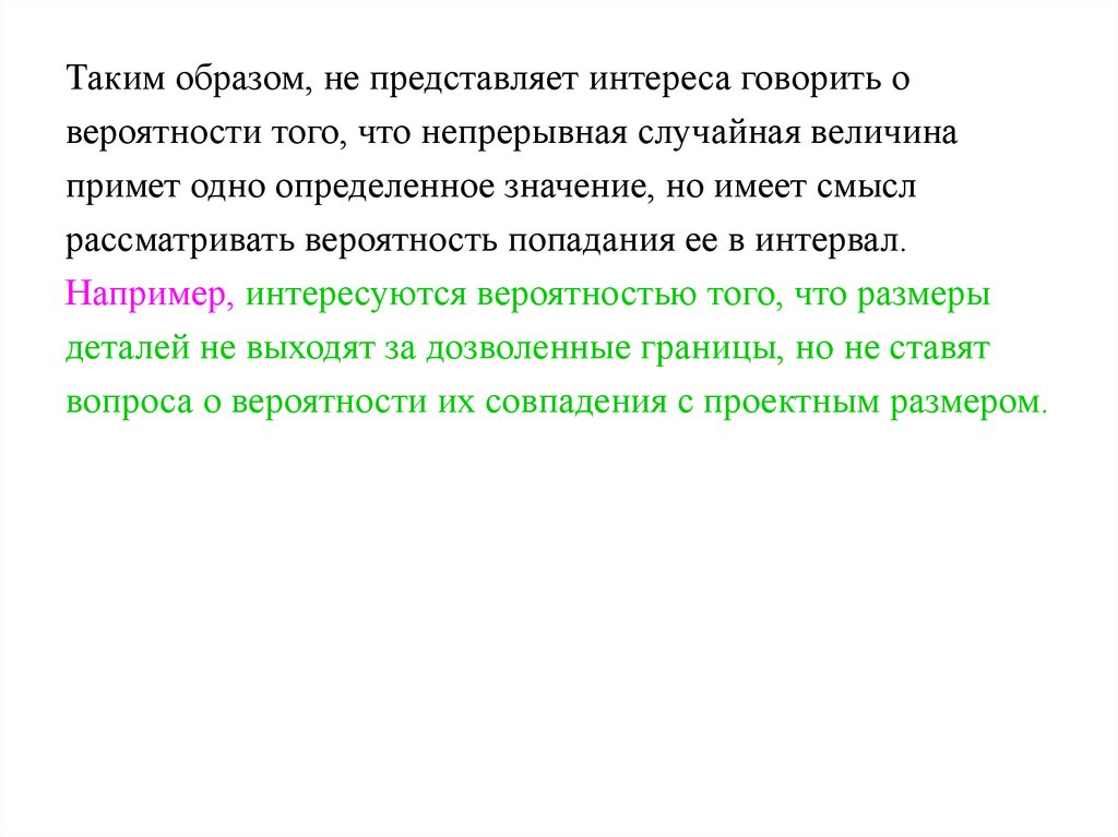 Таким образом, не представляет интереса говорить овероятности того, что непрерывная случайная величина