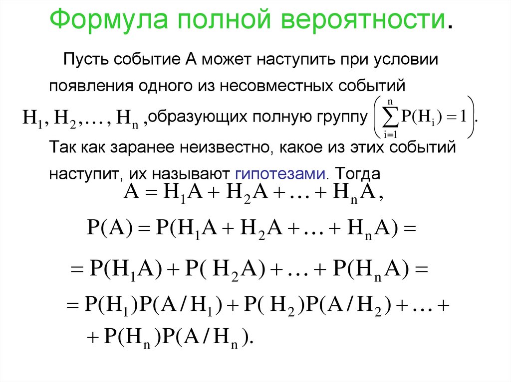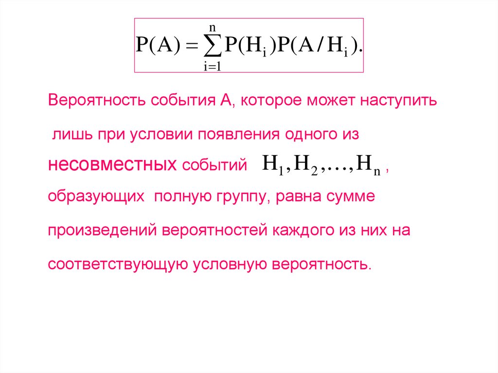 H1 , H 2 , , H n ,образующих полную группу P(Hi ) 1 .