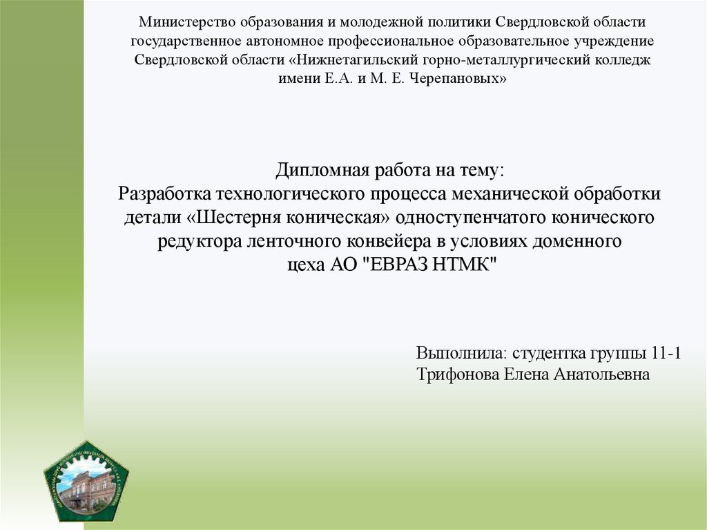 Свердловской области «Нижнетагильский горно-металлургический колледж