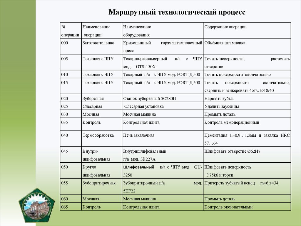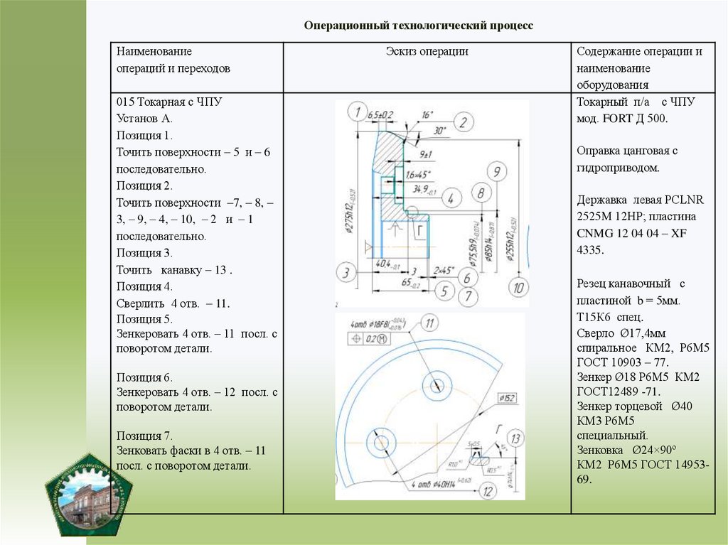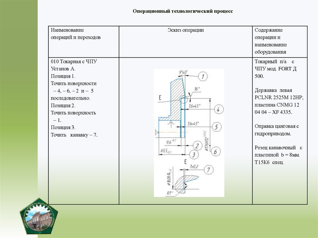 6) разработать маршрут обработки детали;