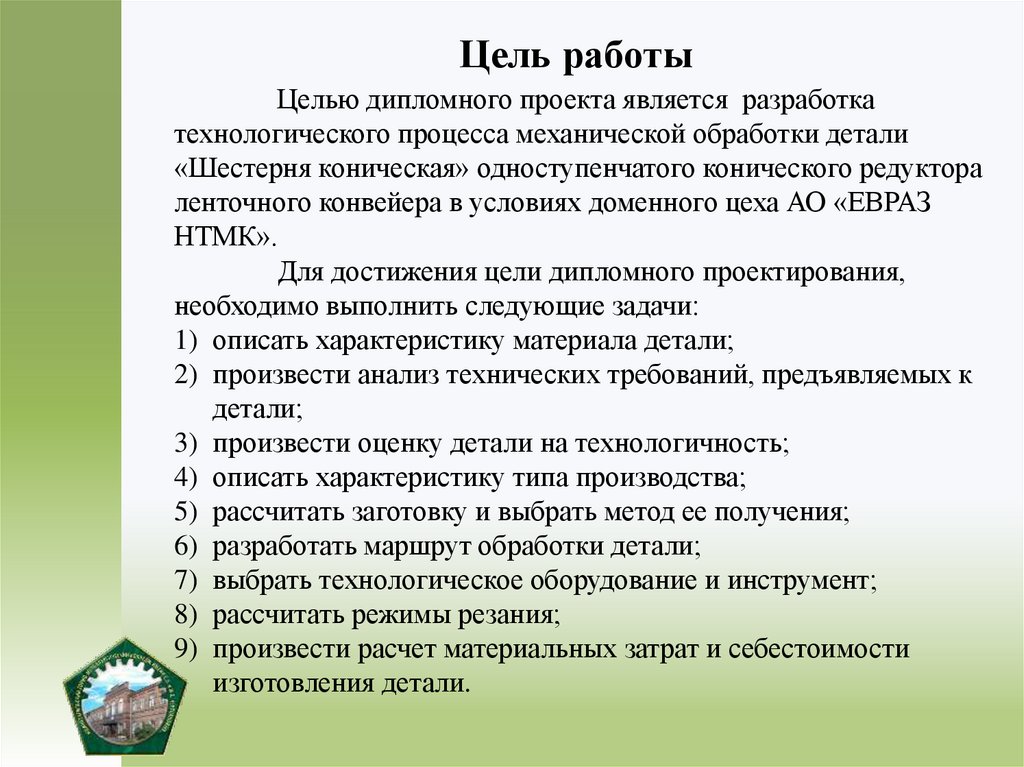 Цель работыЦелью дипломного проекта является разработка