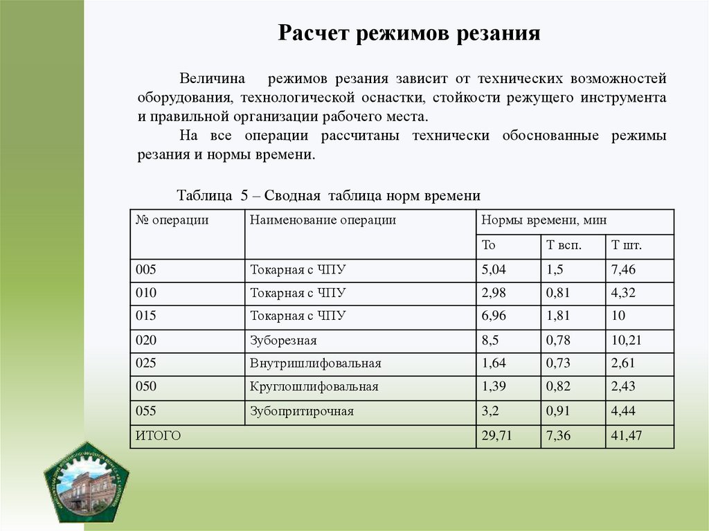 8) рассчитать режимы резания;