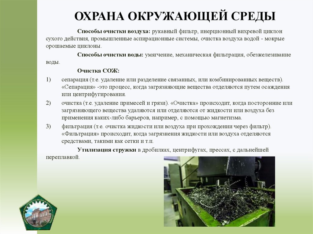 ОХРАНА ОКРУЖАЮЩЕЙ СРЕДЫСпособы очистки воздуха: рукавный фильтр, инерционный вихревой циклон
