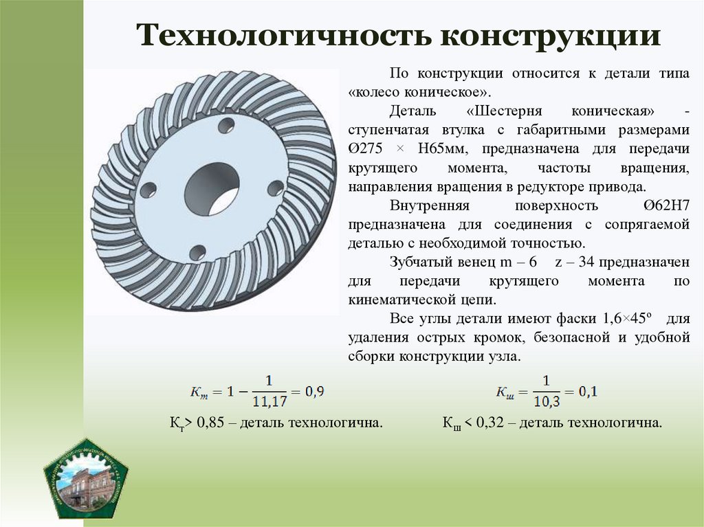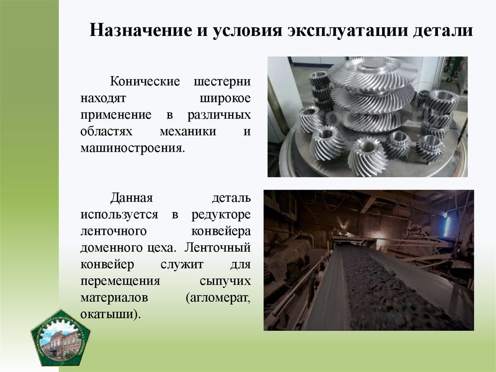 Назначение и условия эксплуатации деталиКонические шестерни