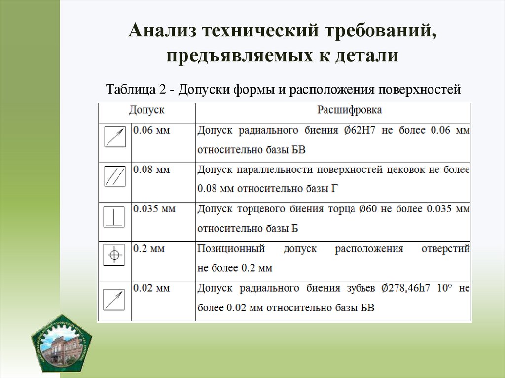 Анализ технический требований,предъявляемых к детали