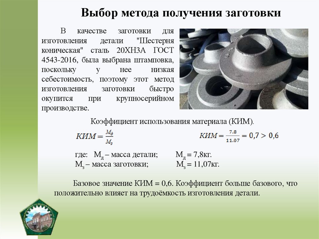 5) рассчитать заготовку и выбрать метод ее получения;