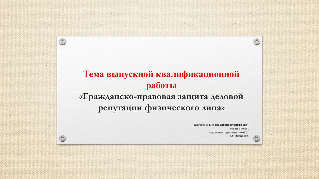 1. Тема выпускной квалификационной работы «Гражданско-правовая защита деловой репутации физического лица»