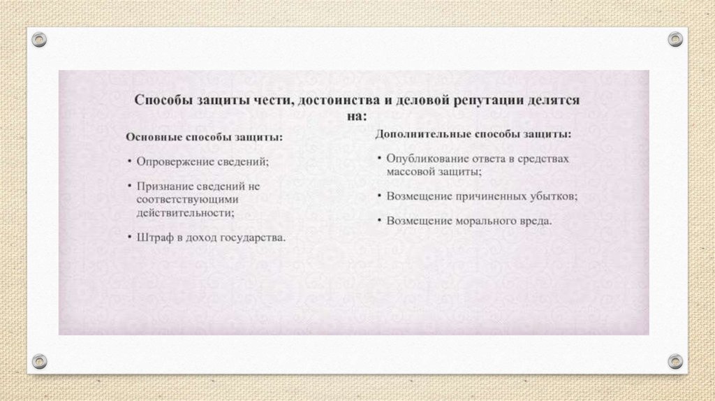 рассмотреть формы и способы защиты чести, достоинства и деловой