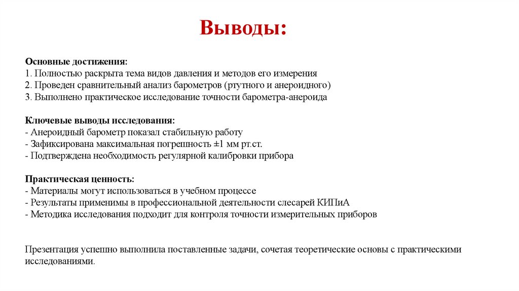 ИССЛЕДОВАНИЕ ВИДОВ ДАВЛЕНИЯ