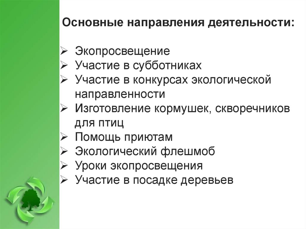 Основные направления деятельности:Экопросвещение